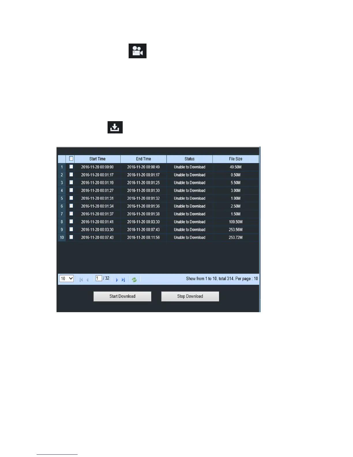 Click download icon “ ” on the control bar to display all the matched record file according to