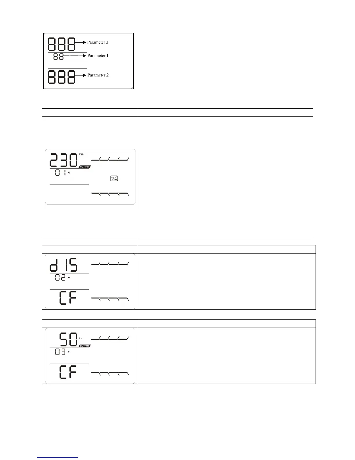 CF 50: presents output frequency is 50Hz