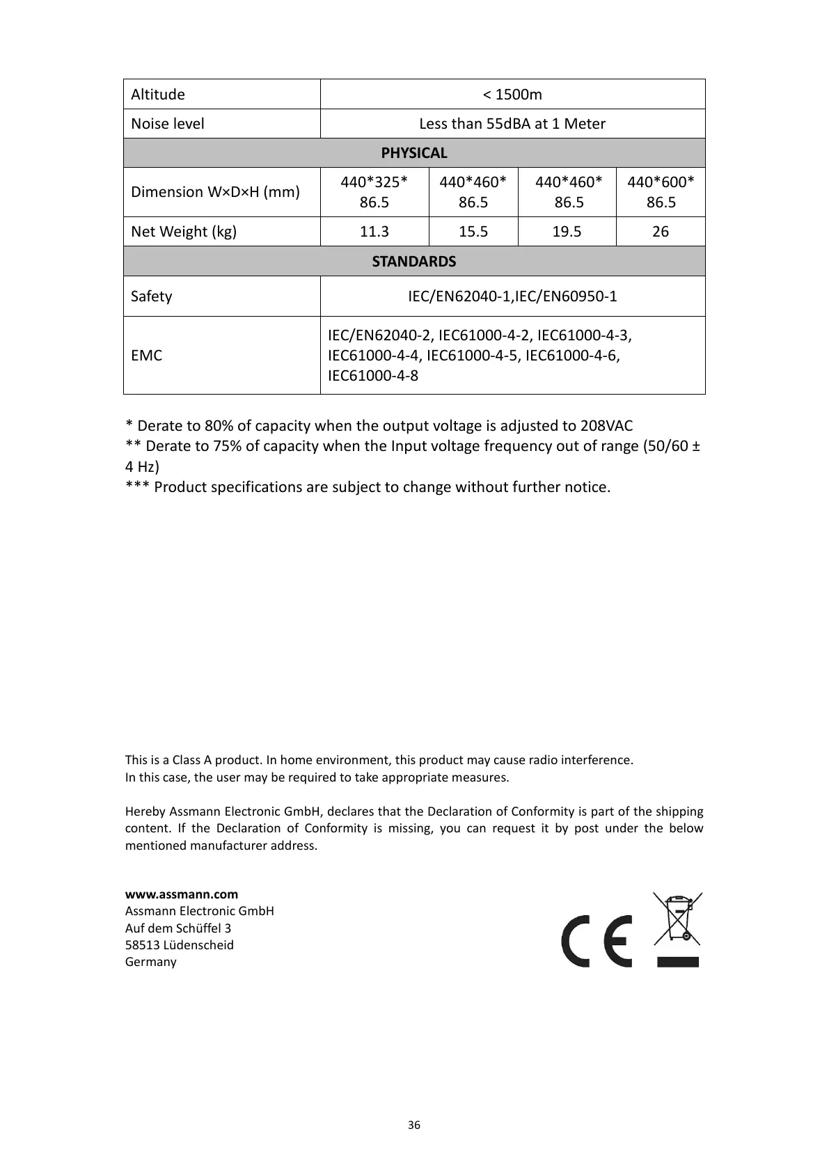 IEC/EN62040-2, IEC61000-4-2, IEC61000-4-3,