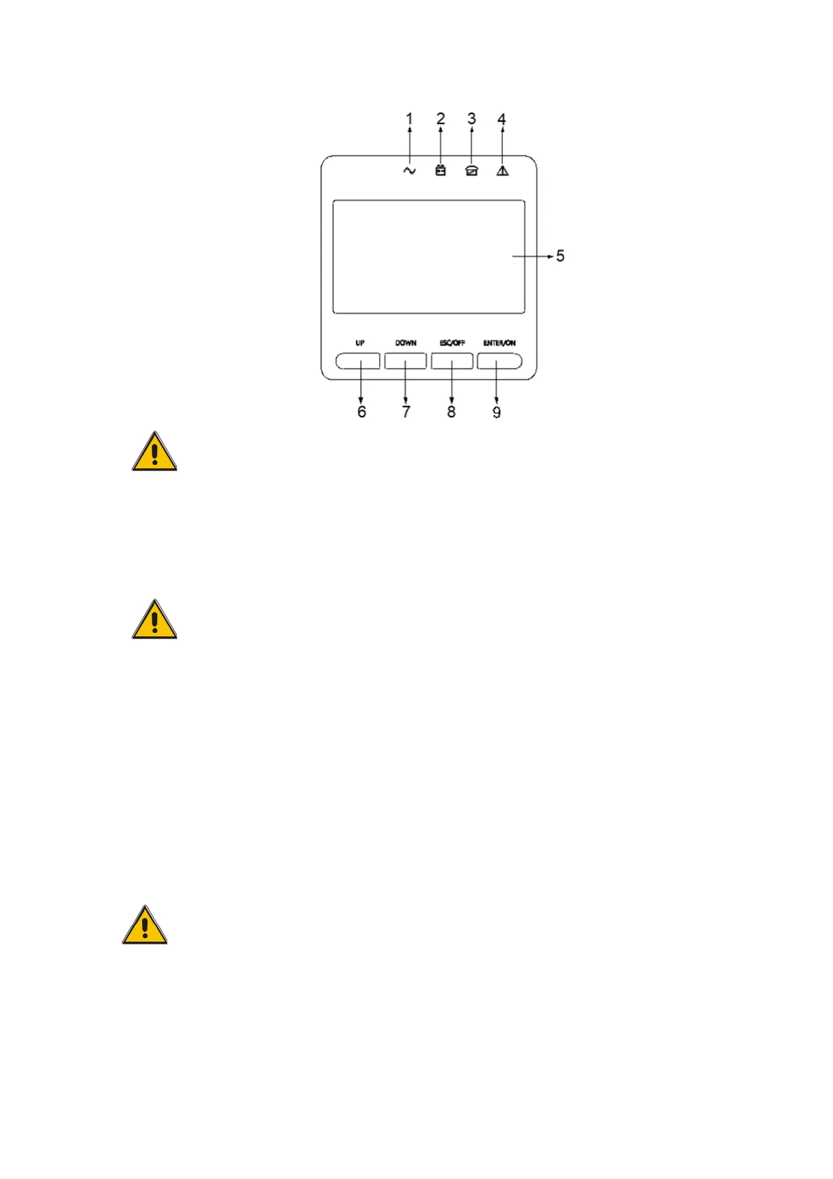 sounds, the inverter LED will extinguish, the bypass LED on, then the UPS turns to