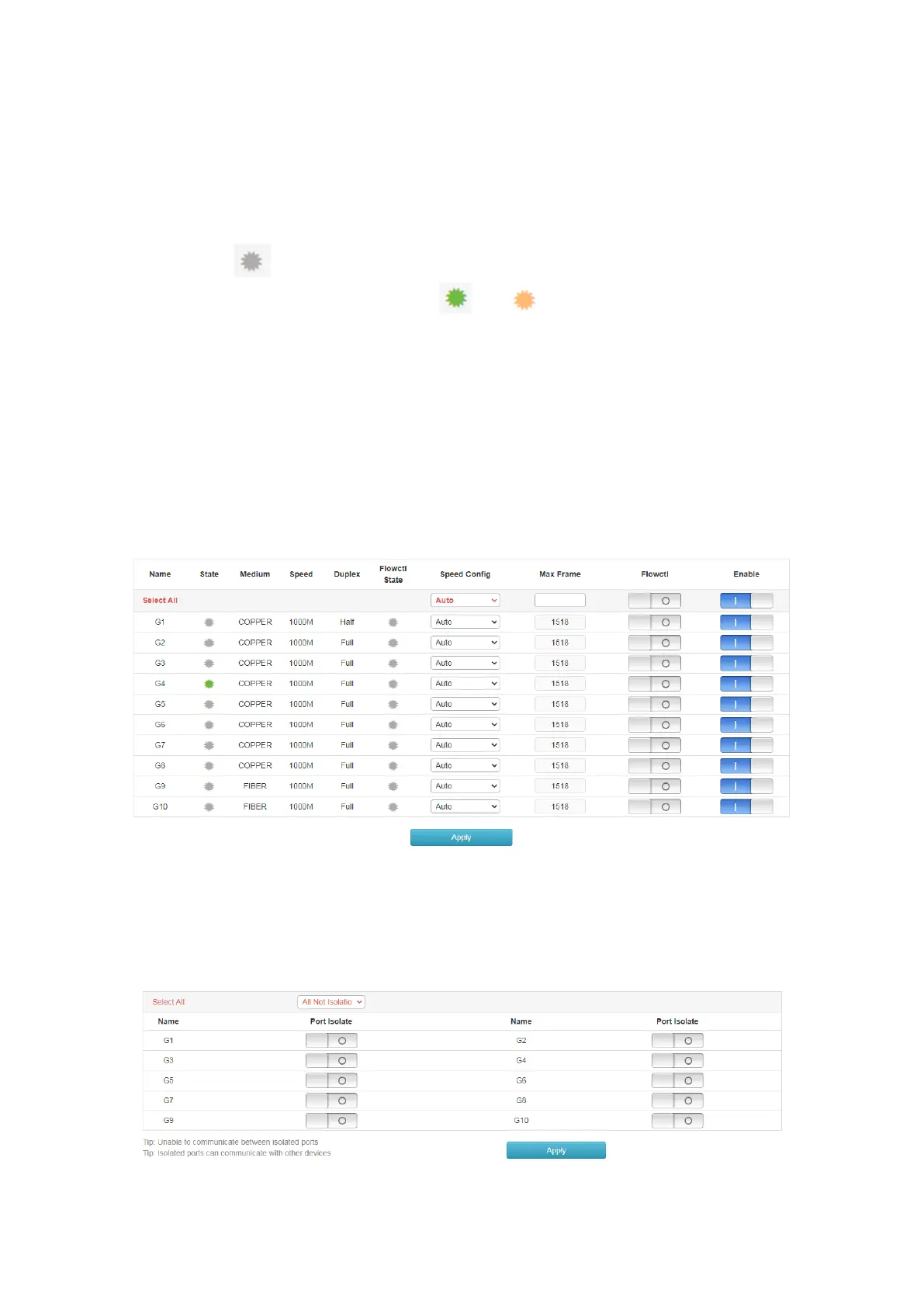 This page is used to configure the port isolated. The isolated ports cannot