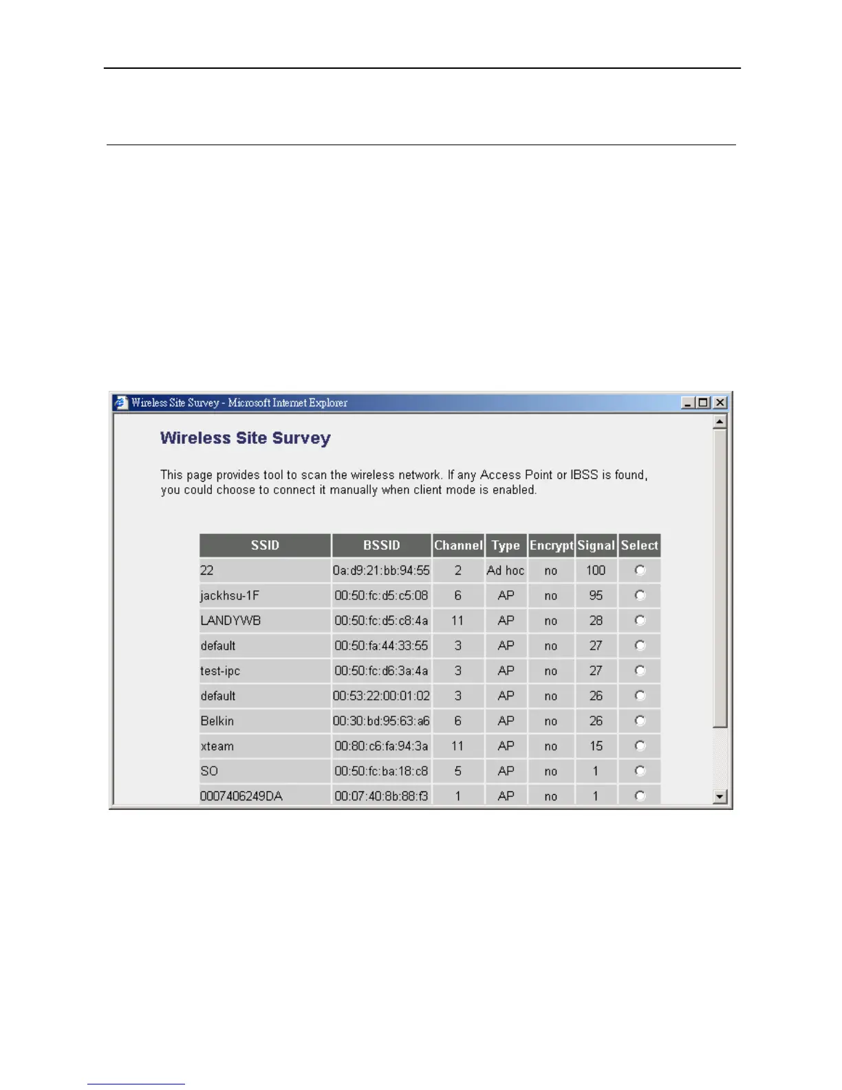 “Wireless Site Survey” searches for all available access points near by. You can