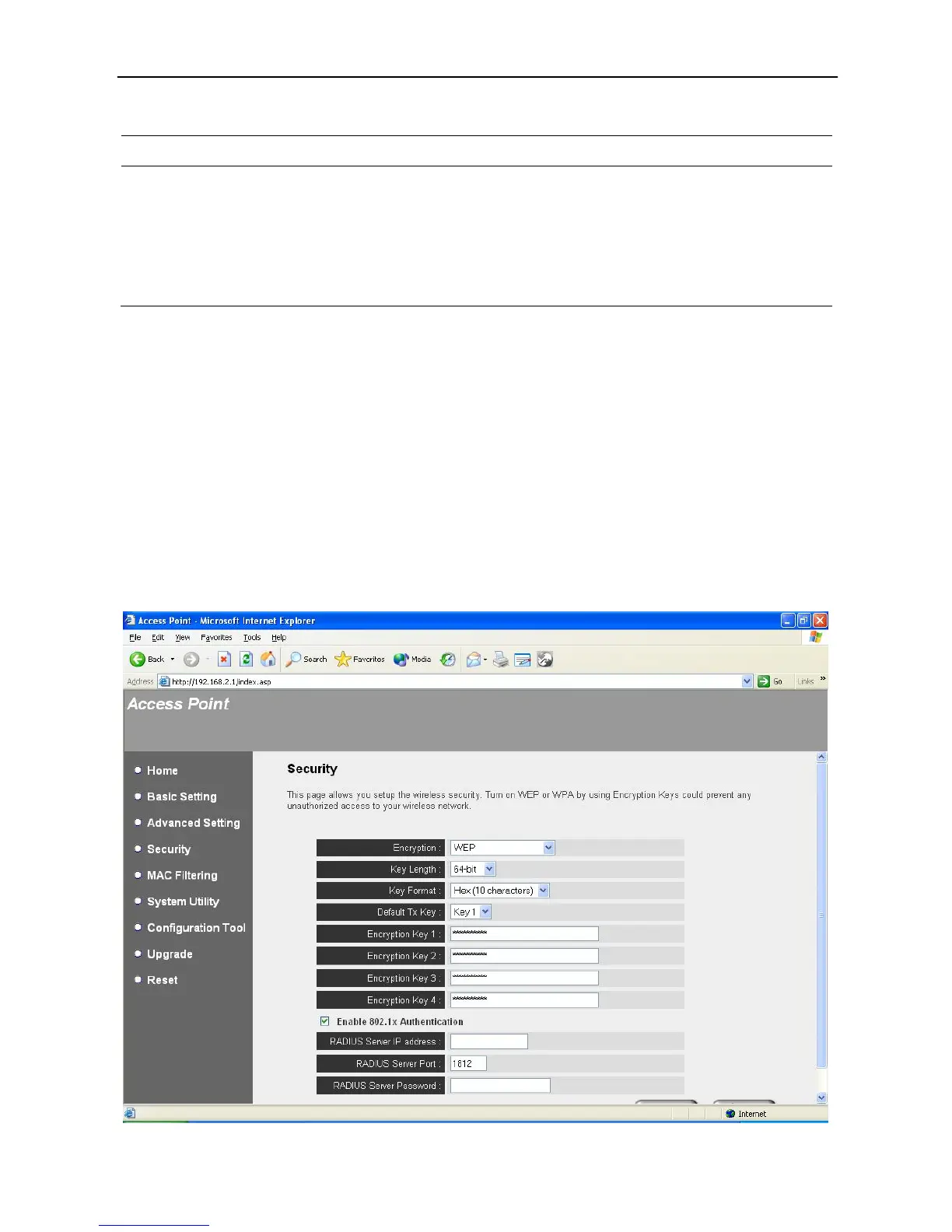 communication. You can use 802.1x with WEP encryption in “AP mode”, “AP