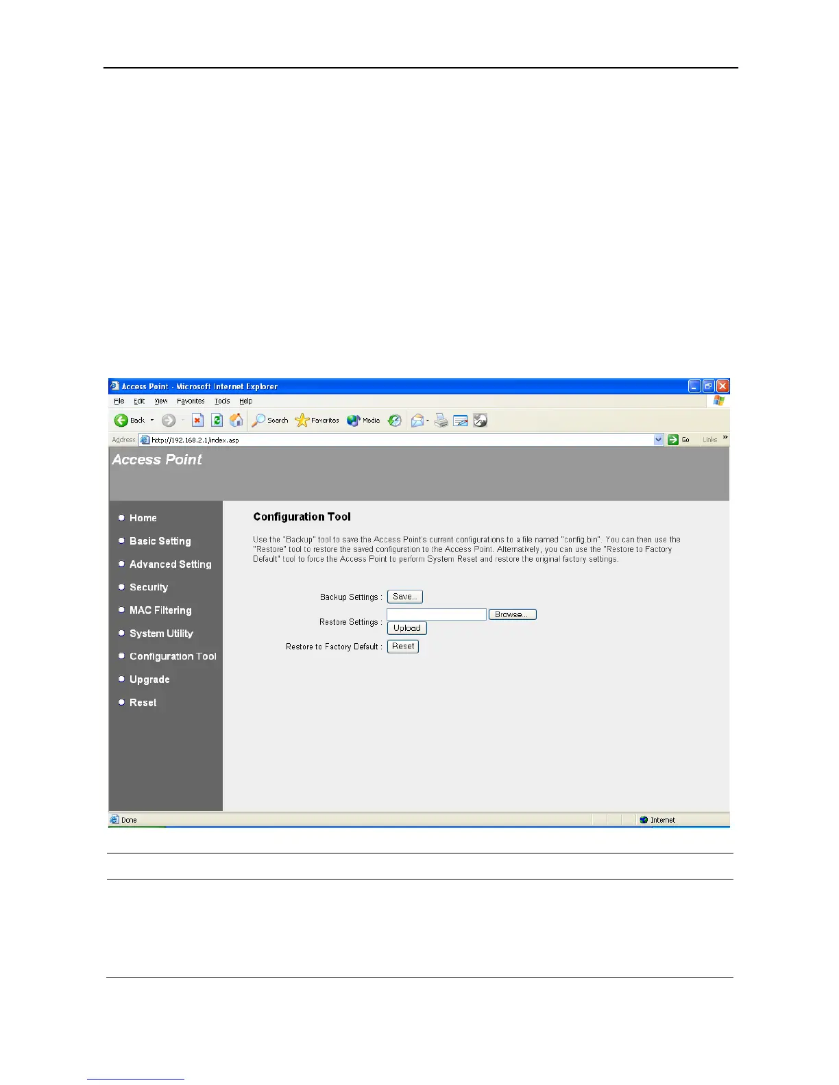 tool to upload and restore the saved configuration to the Access Point.