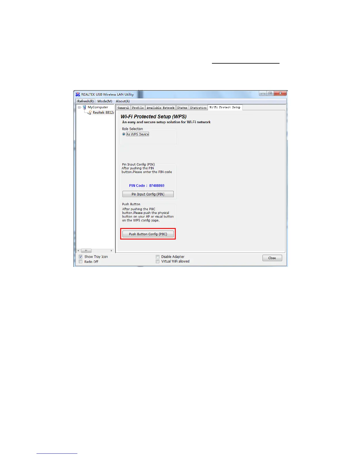 To use Push-Button WPS configuration, please click ‘Push Button Config (PBC)