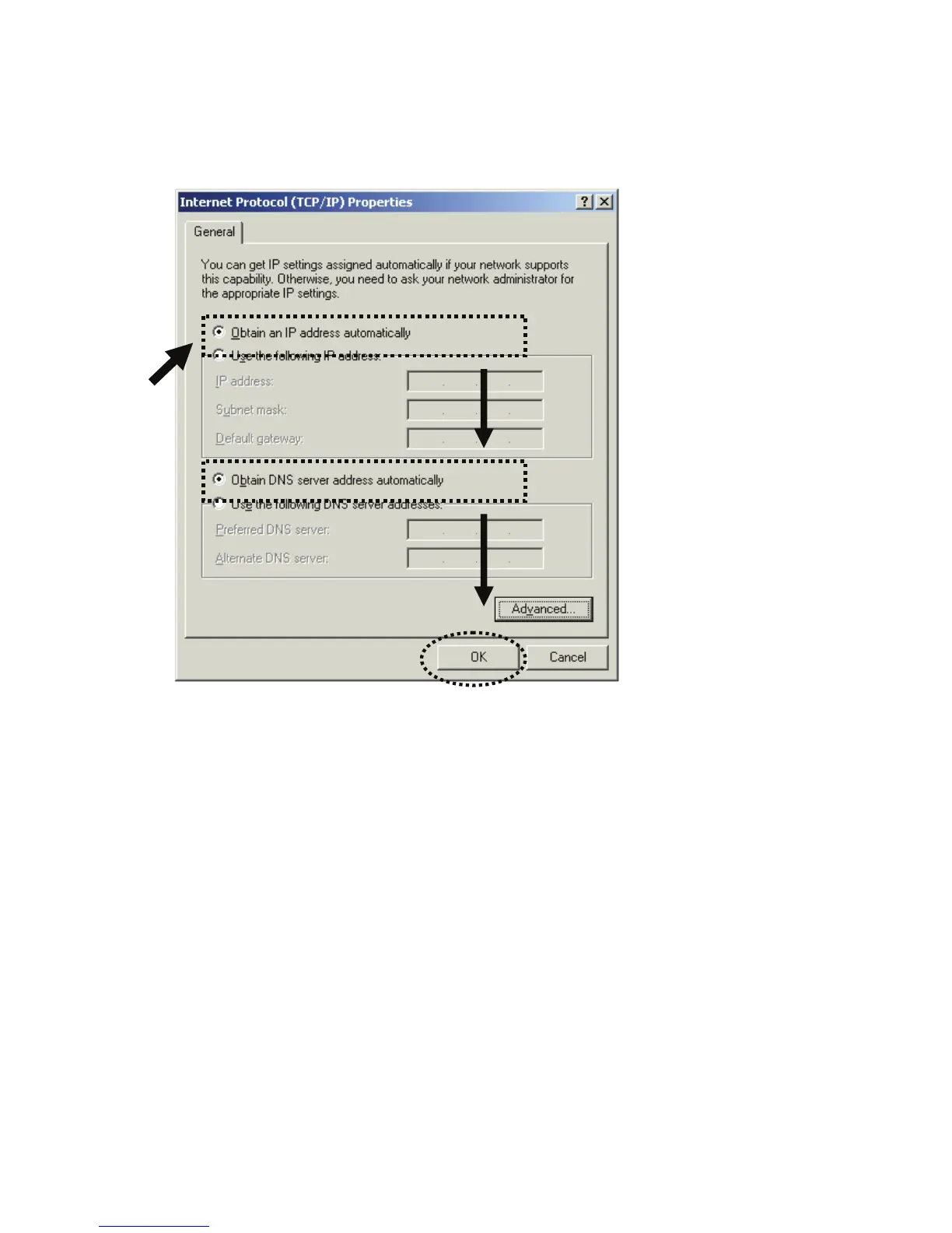 2. Select ‘Obtain an IP address automatically’ and ‘Obtain DNS server address