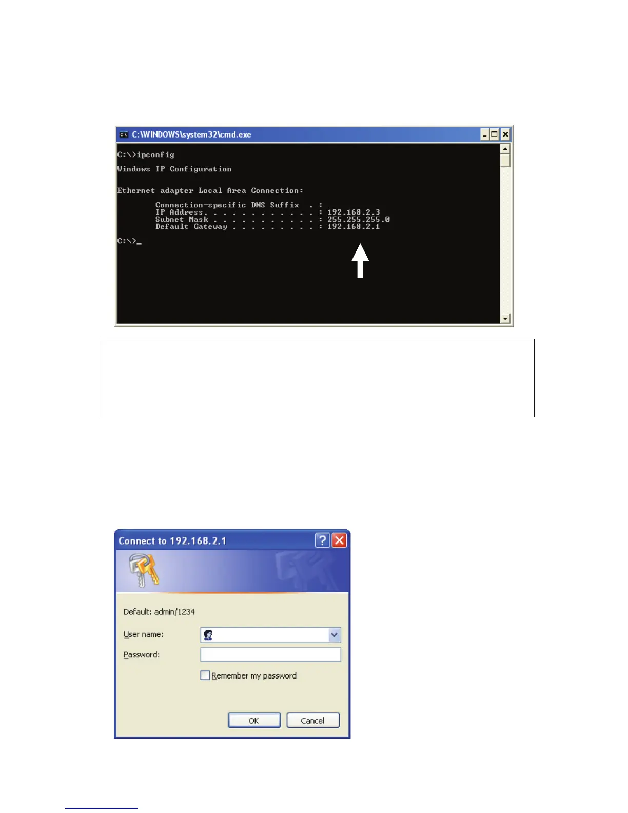 by ‘Default Gateway’ (In this example, the IP address of router is 192.168.2.1,