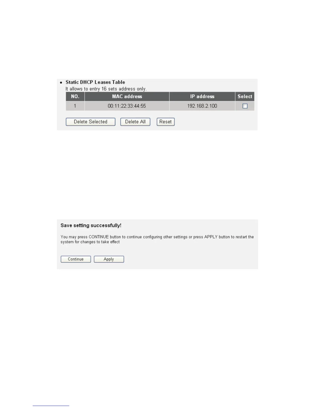 setup, or click ‘Apply’ to reboot the router so the settings will take effect