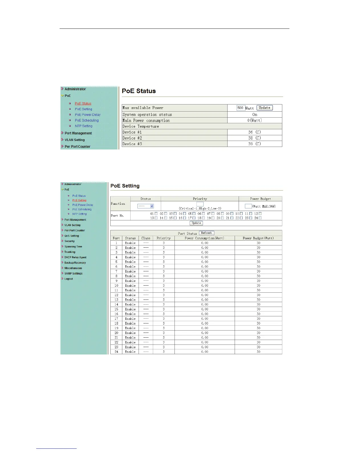This page is for PoE setting.