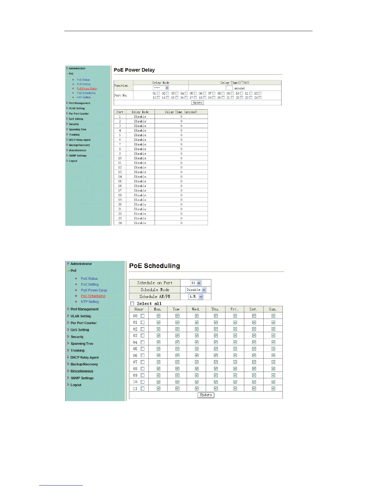This page is for setting PoE Power Delay.