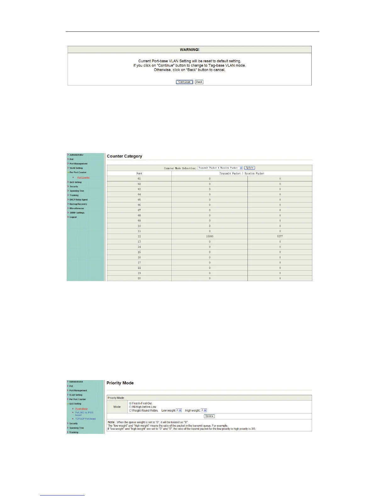 This page allows the user to set the scheduling mode for the TX packets priority. When the
