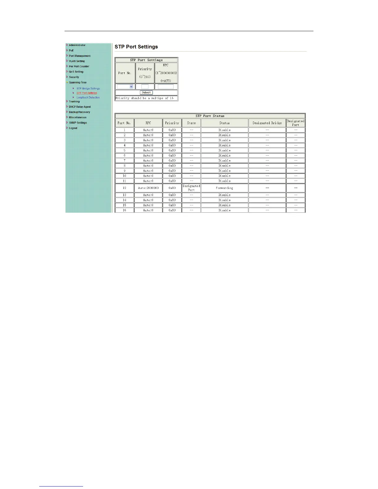 Reset All Ports: This button provides a key to force you to reset the port function.