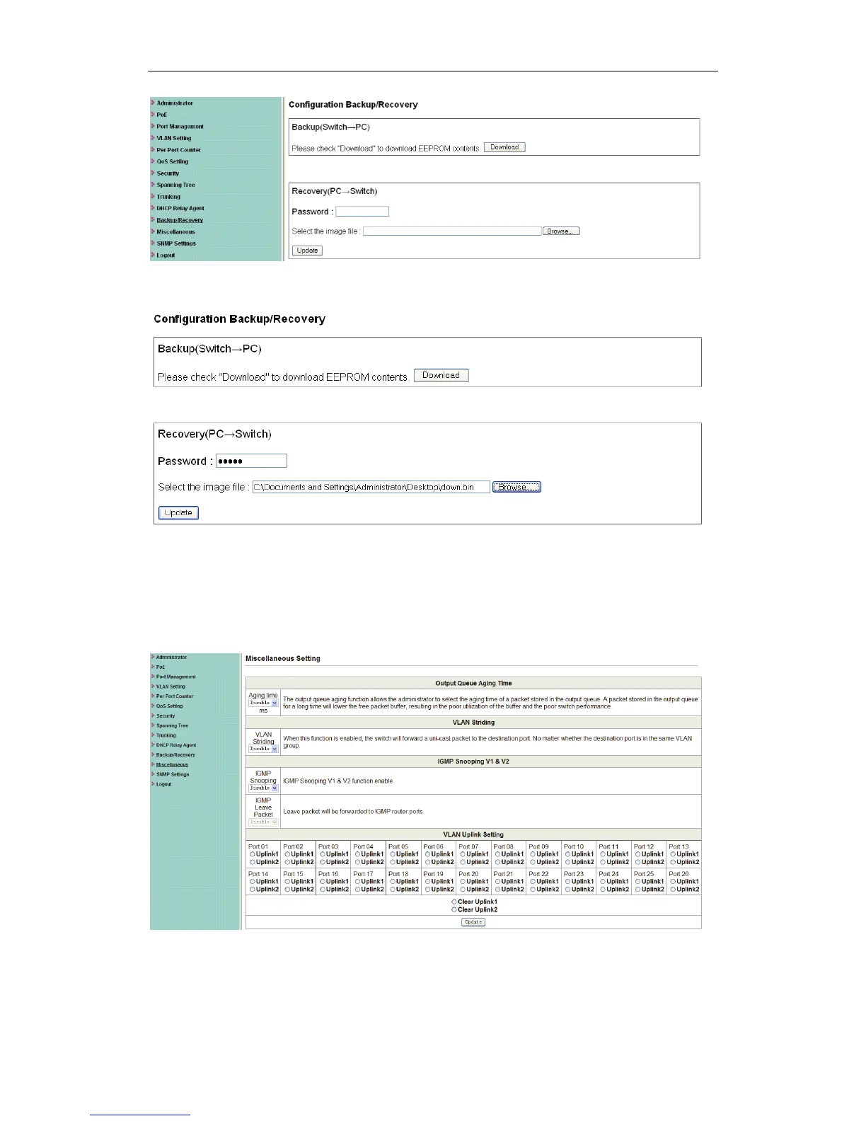 Miscellaneous is used to configure output queue aging time, VLAN stride, IGMP snooping,