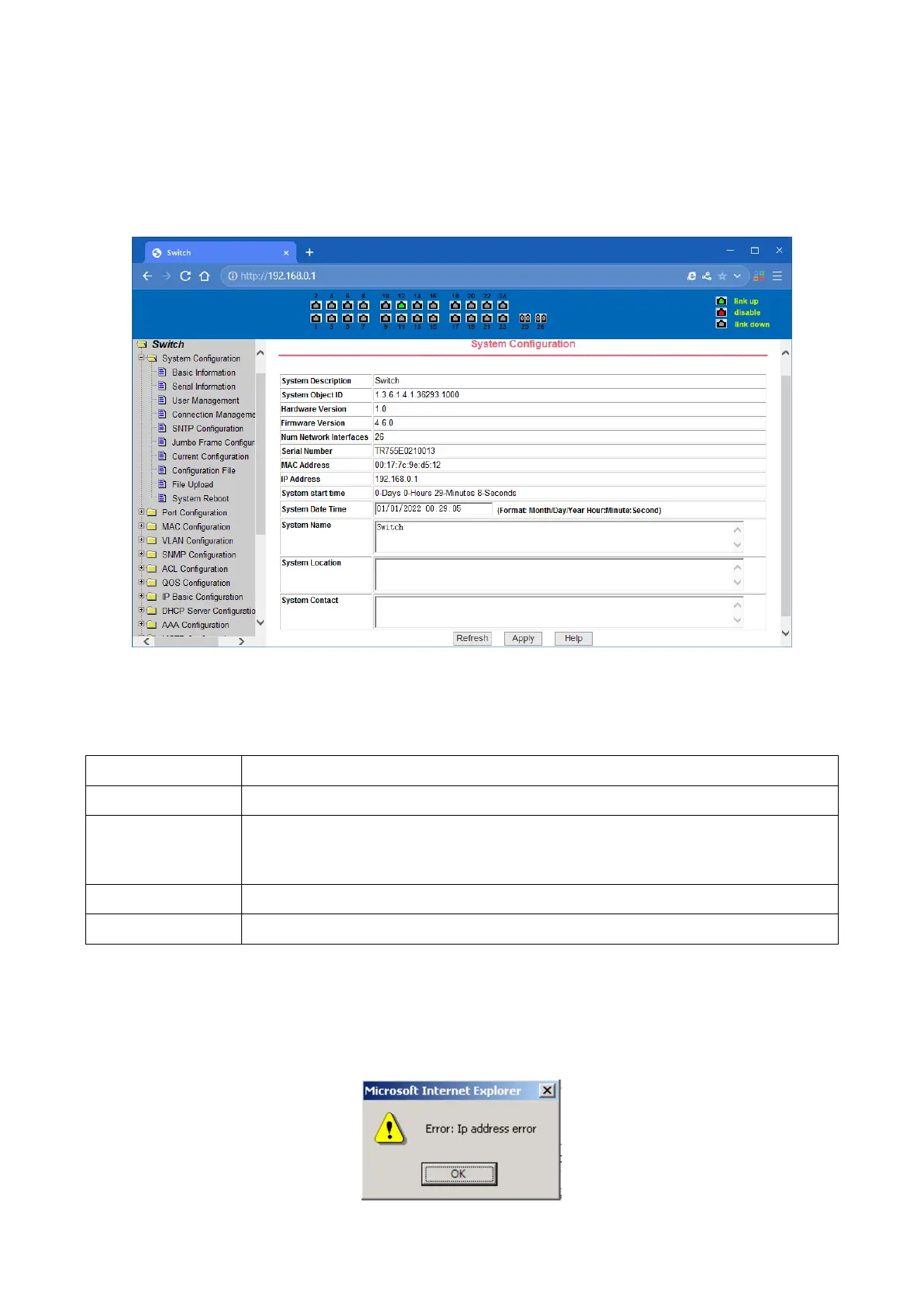 If the switch WEB server error occurred while processing user requests, it will display a dialog box
