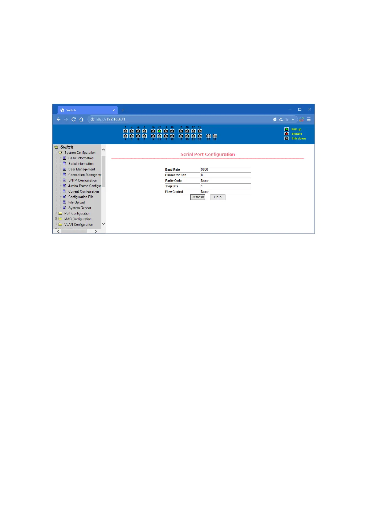 It is a serial port configuration page; the page displays serial baud rate and other related