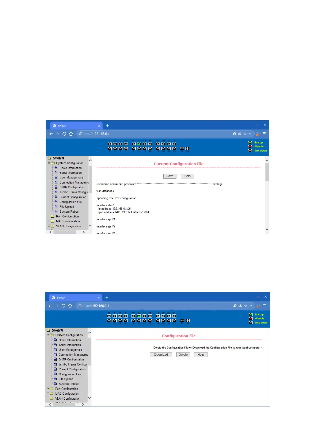 Download Downloads the configuration file to your computer and names it switch.cfg