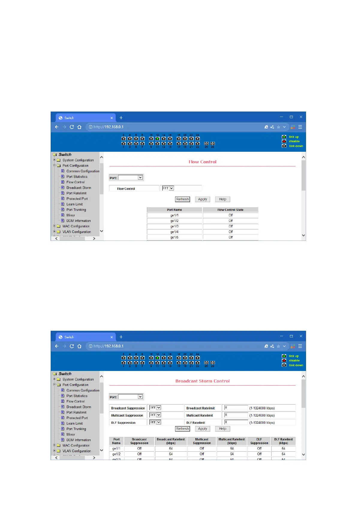 Users can enable and disable each port’s send and receive flow control through this page.