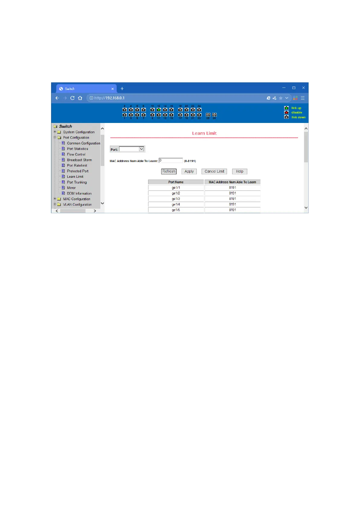 This page used to restrict the port can learn of the MAC address of the number, range is 0-8191.