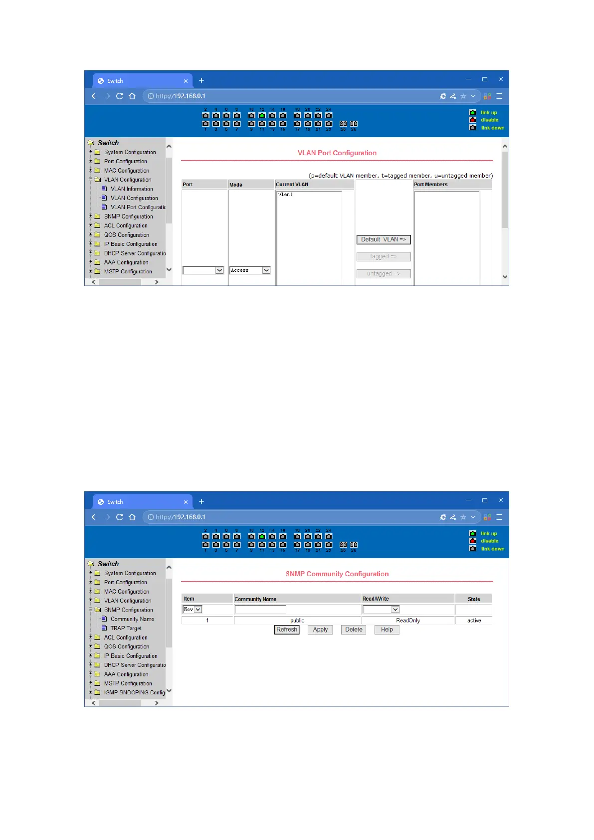 VLAN port configuration page