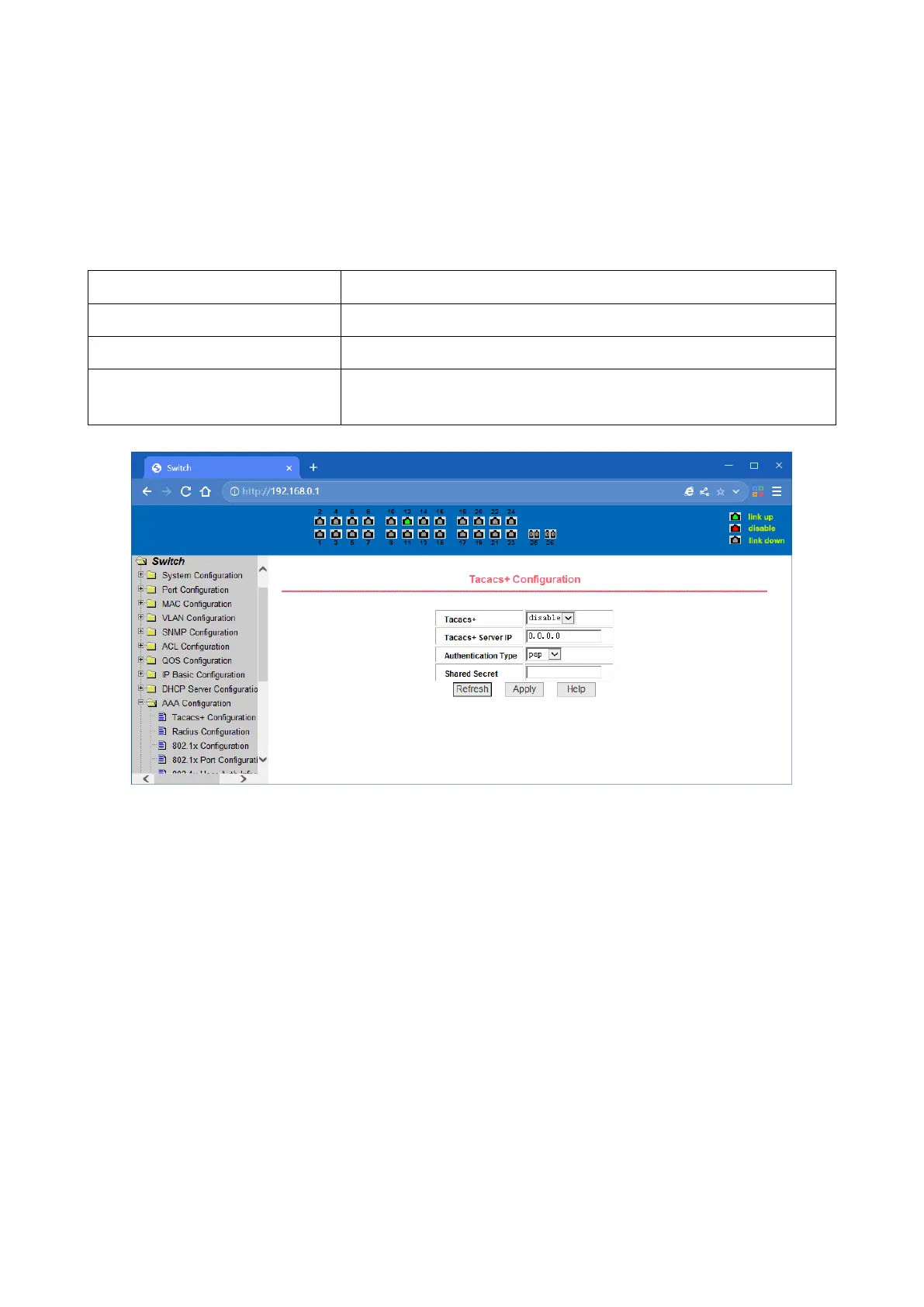 TACACS+ Configuration page