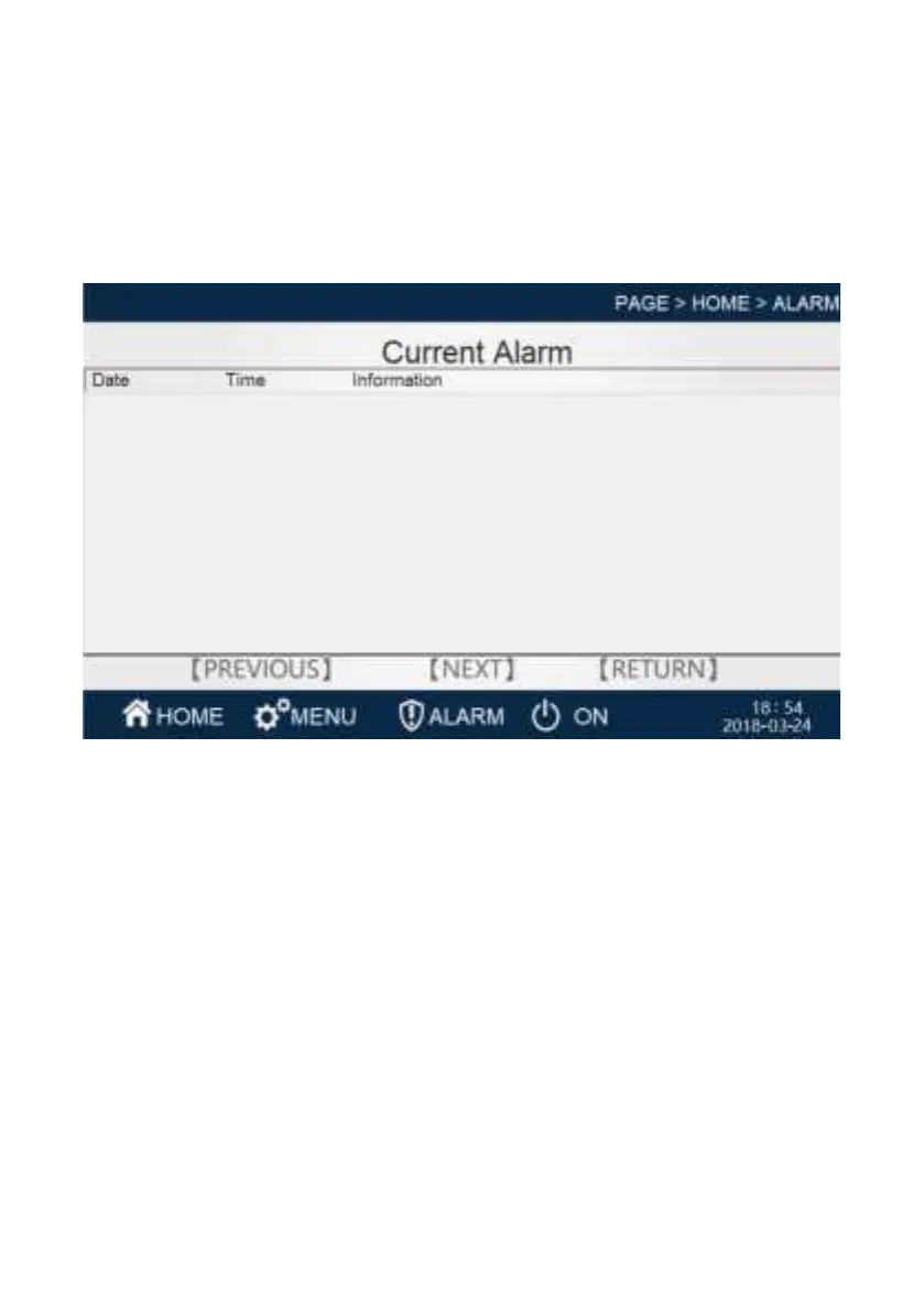 Under this menu, you can view all alarms that exist in the current unit.