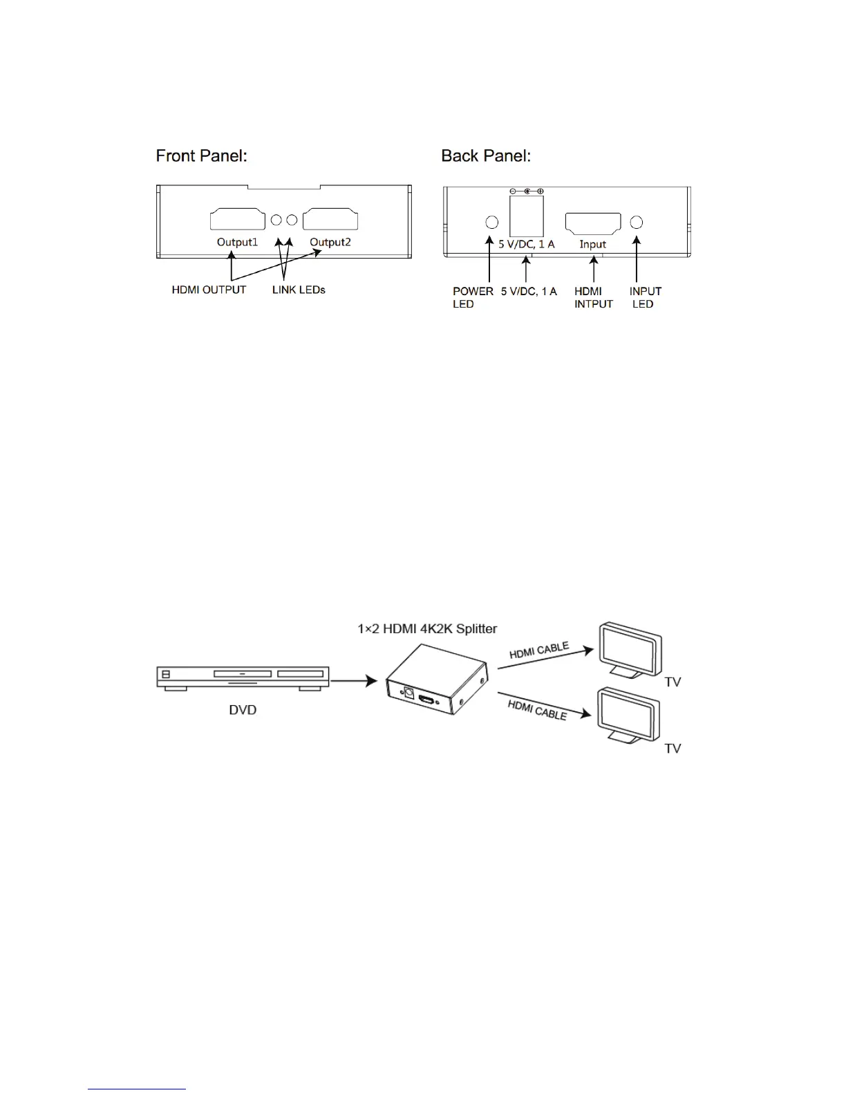 5 V/1A DC: Connect the 5 V/1A DC power supply into the splitter and