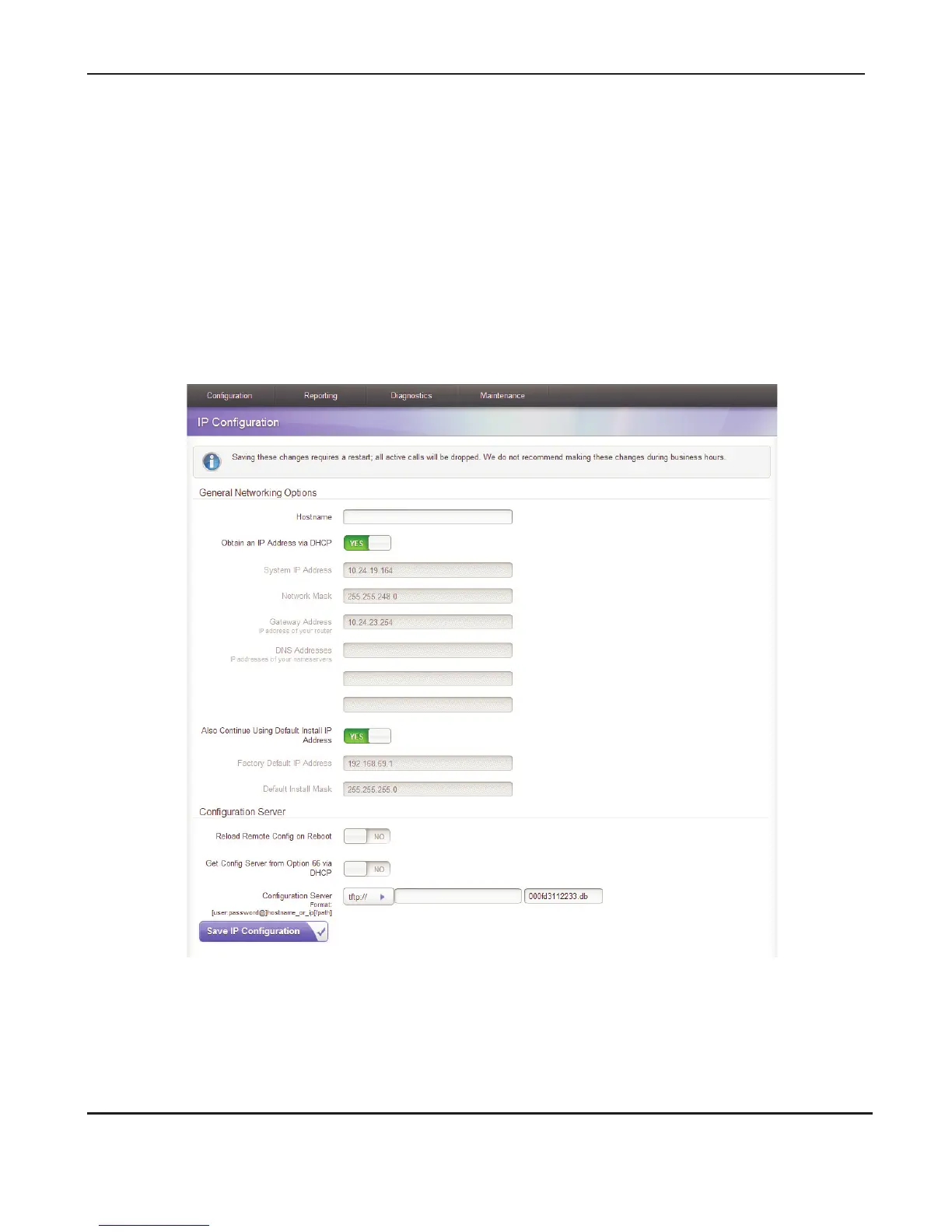 Note: Saving changes to the IP configuration requires a restart,