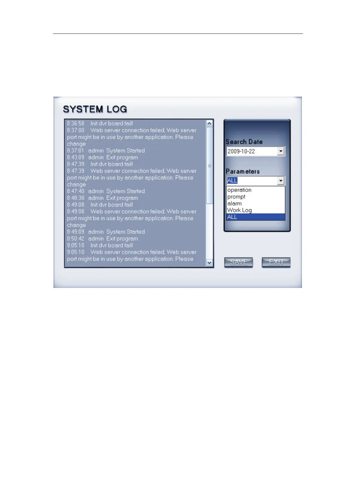 Users can search log according to the parameters, such as: operation, prompt,