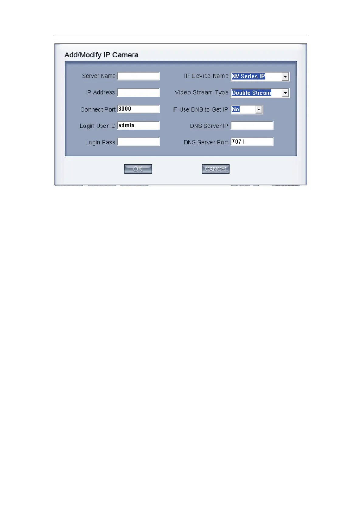 【IP Address】Input the address of the IP Camera, it is an IP address or IP