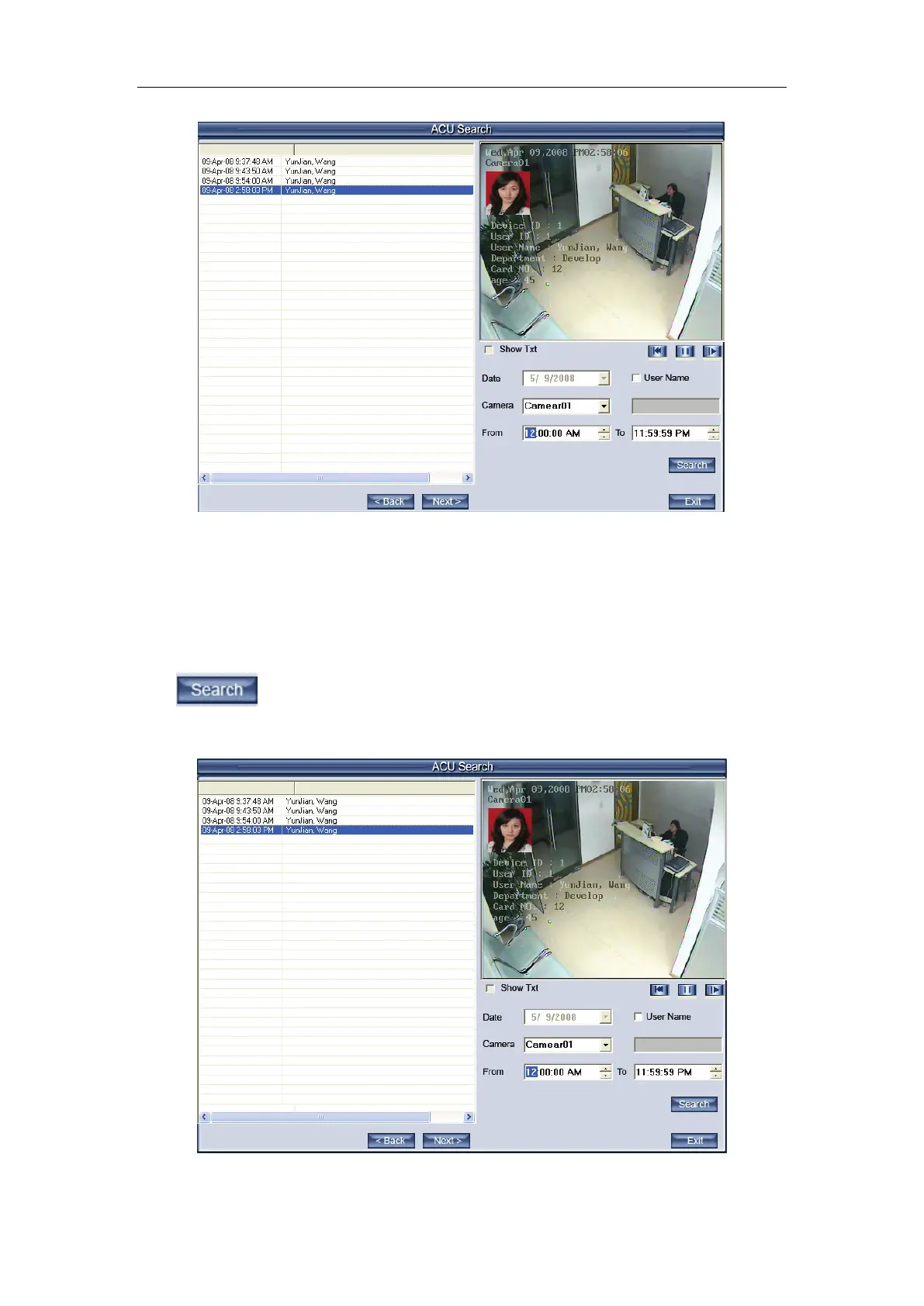 User Name: Search the ACU record with the name input in the blanks. E.g.: