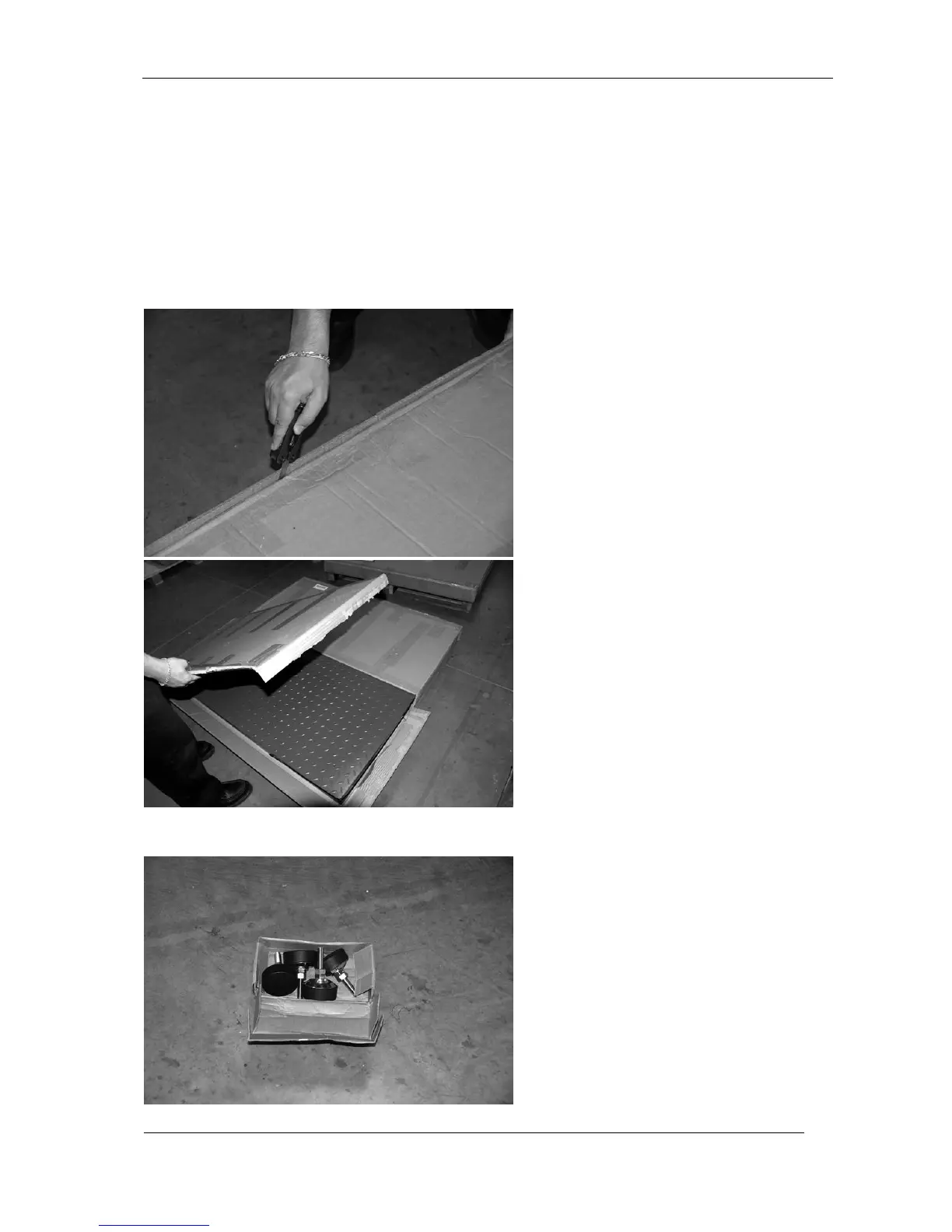 a. Open the scale base box (Box 1) with a knife very carefully. Sharp blade may scratch the scale