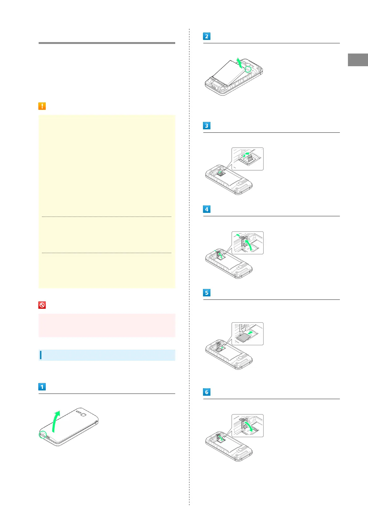 ・Gently lift Back Cover by notch in direction shown with