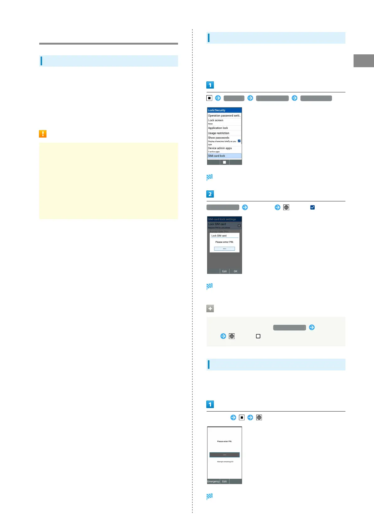 ・Enable USIM card lock by enabling PIN.