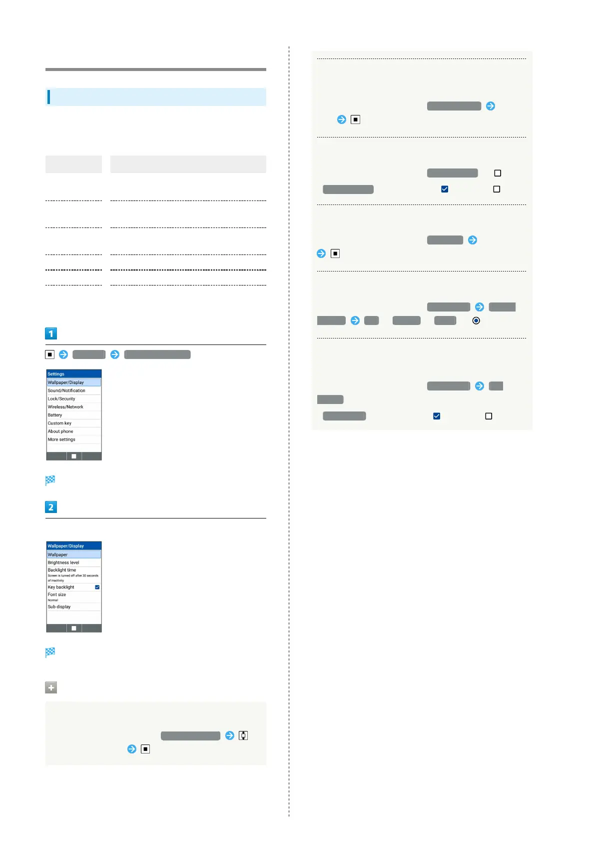 Set Wallpaper, Display brightness, etc. Settable items are the
