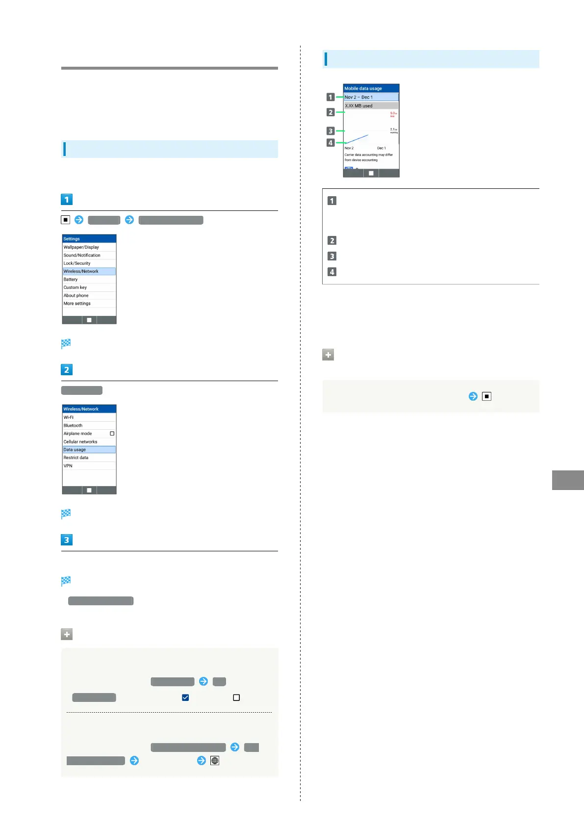 Show cycle for checking data usage/set cycle reset