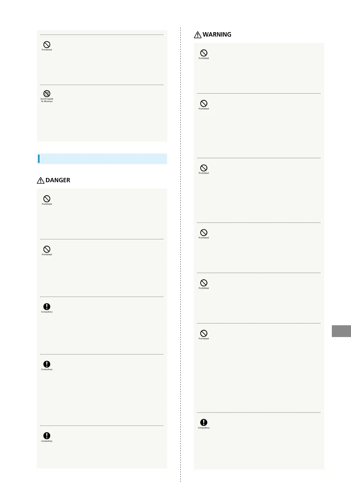 May cause fire, burns, injury, electric shock, etc.