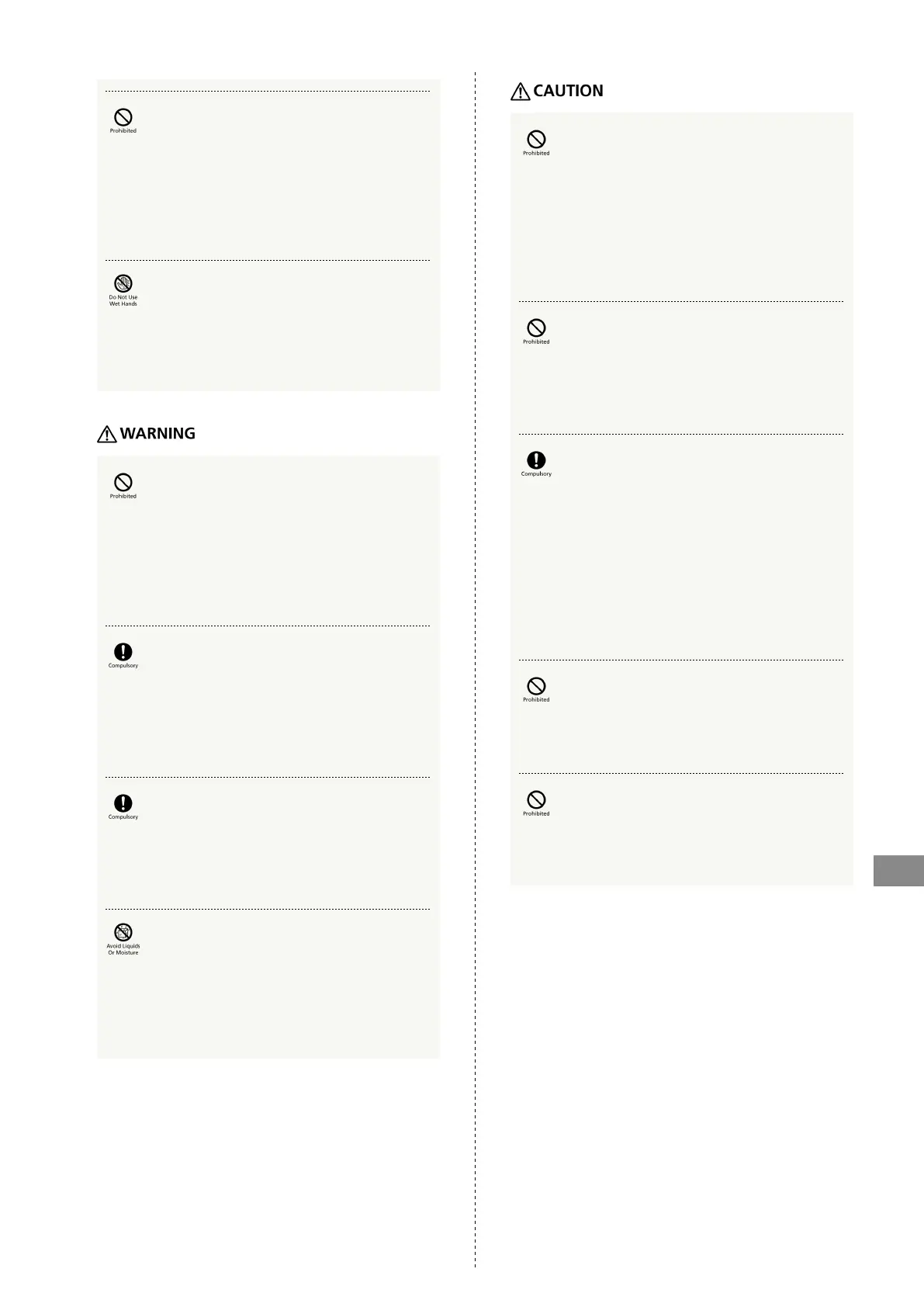 May cause overheating, electric shock, fire, malfunction,