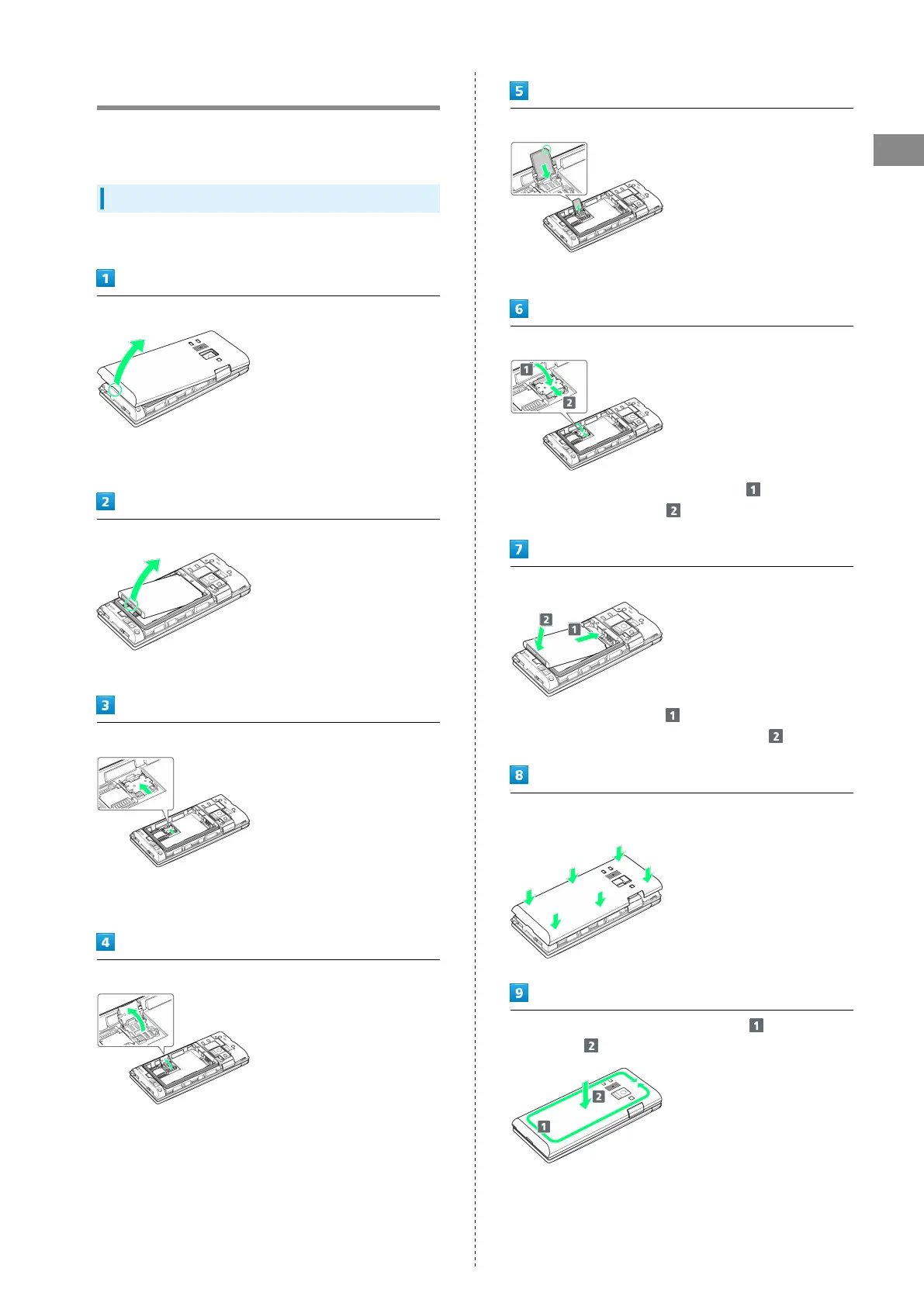 ・Gently lift Back Cover by notch in direction shown with