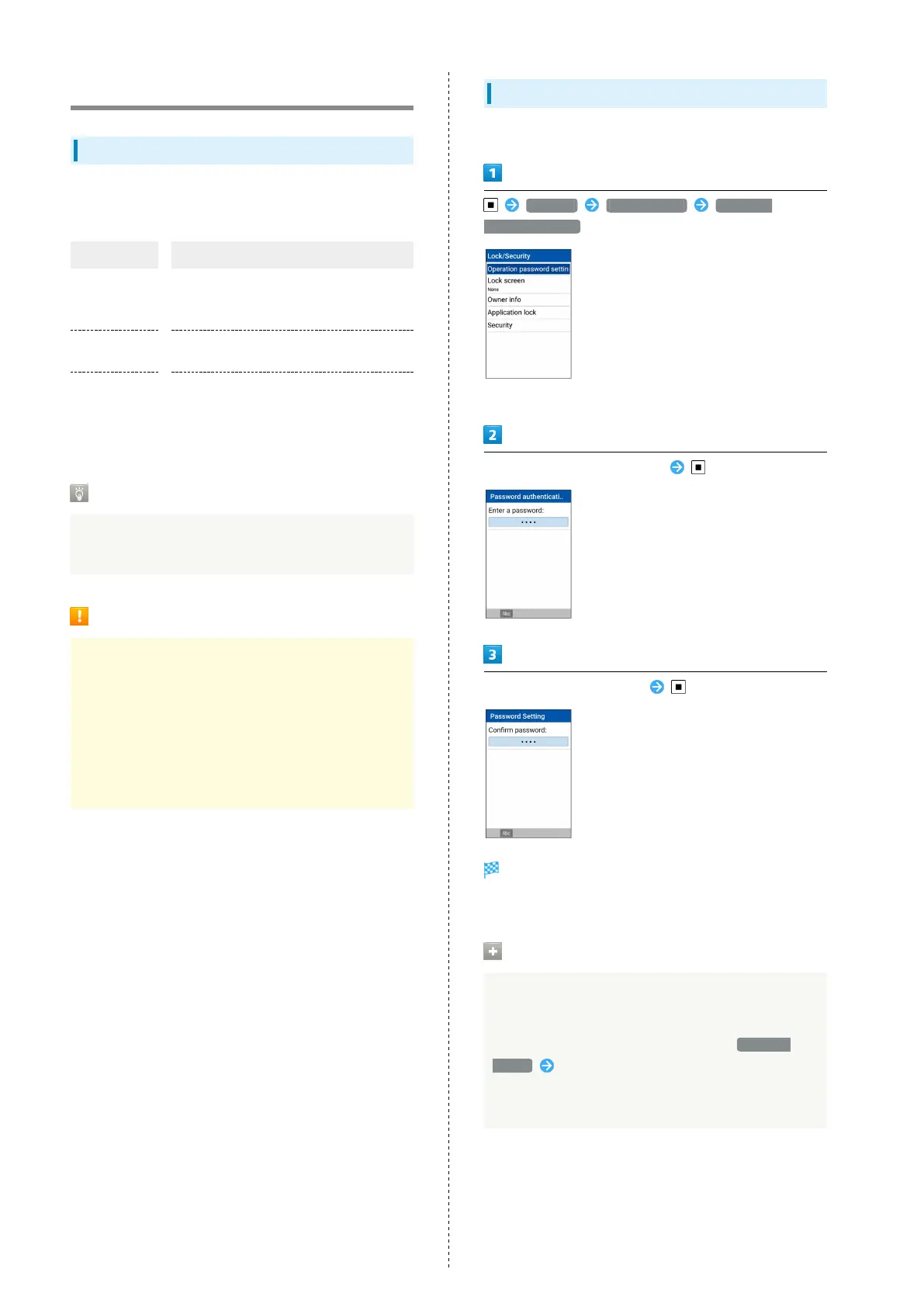 Settings Lock/Security Operation