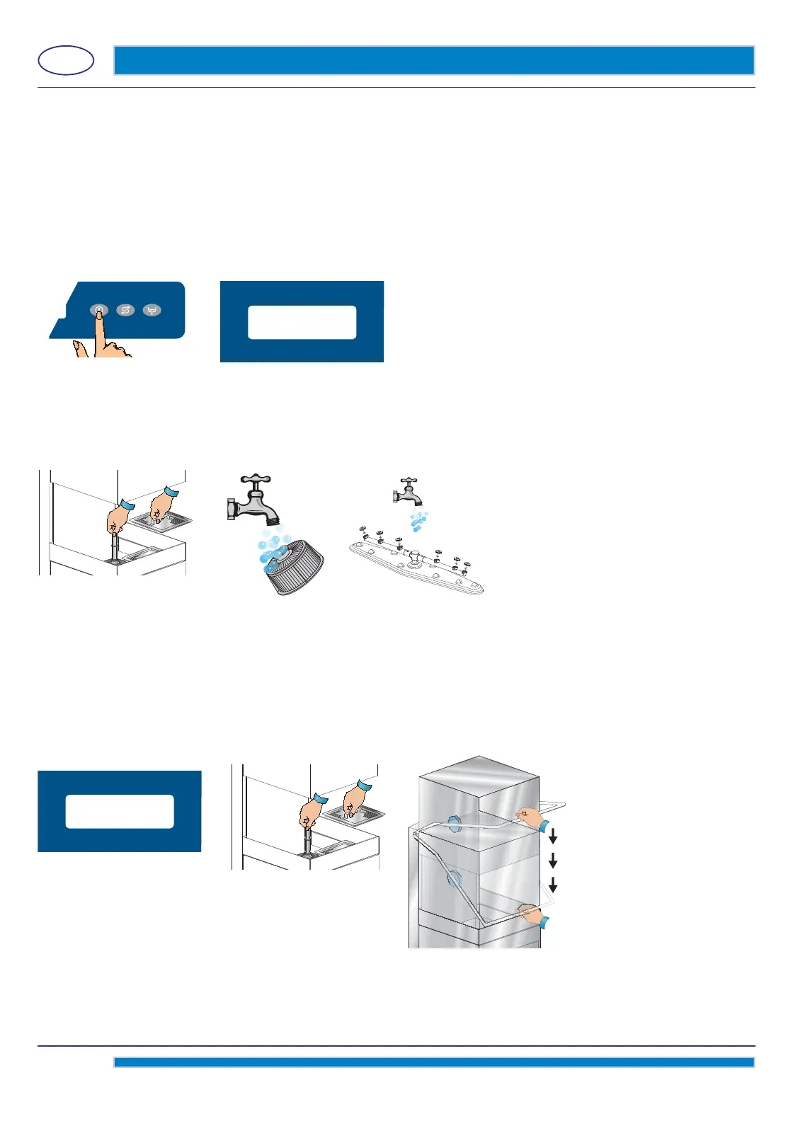 • Reassemble the parts and reposition the wash pipes fi rmly in place. Take extreme care to re-assemble the nozzles in