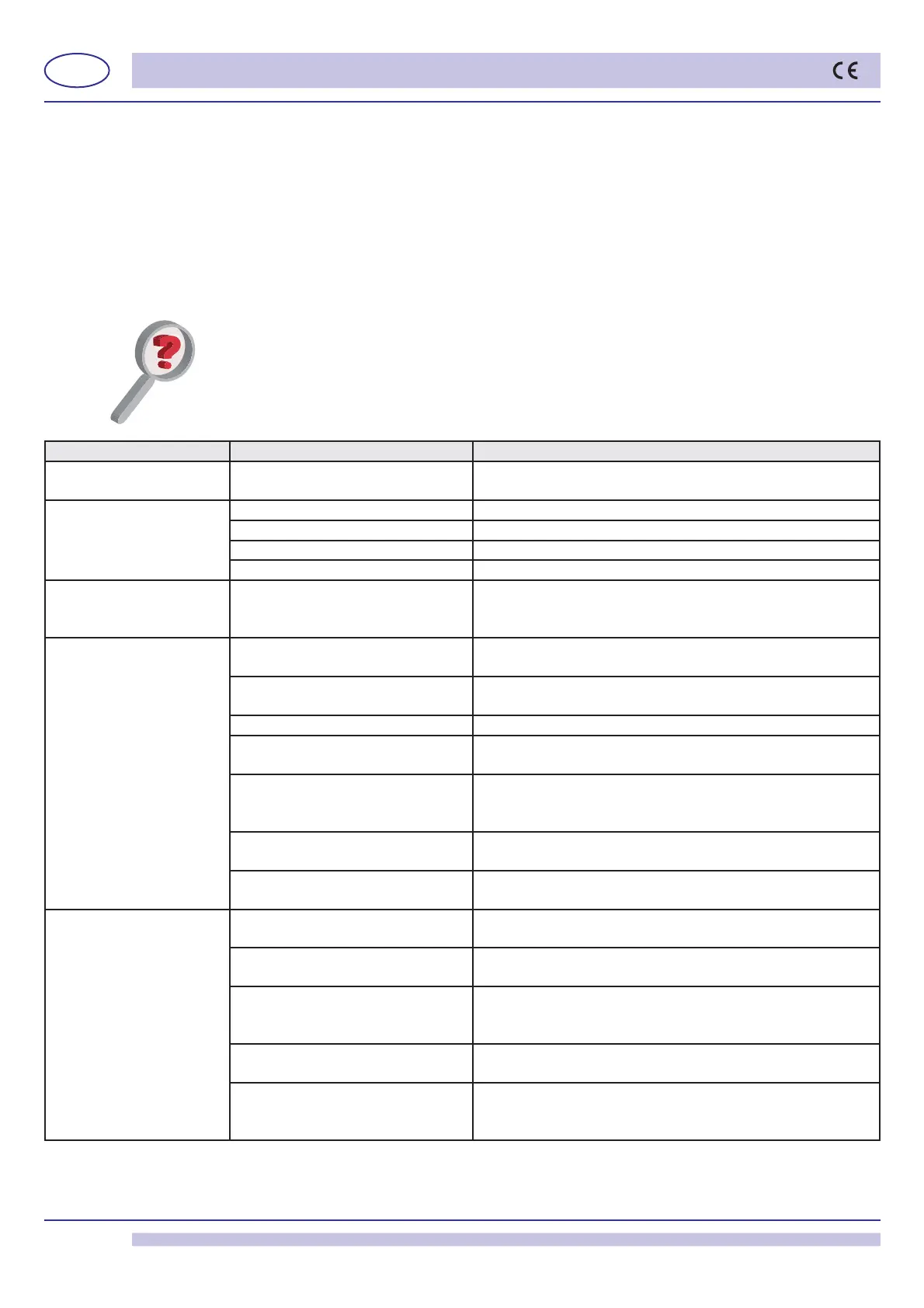 Tipo di disturbo Possibili cause Rimedio