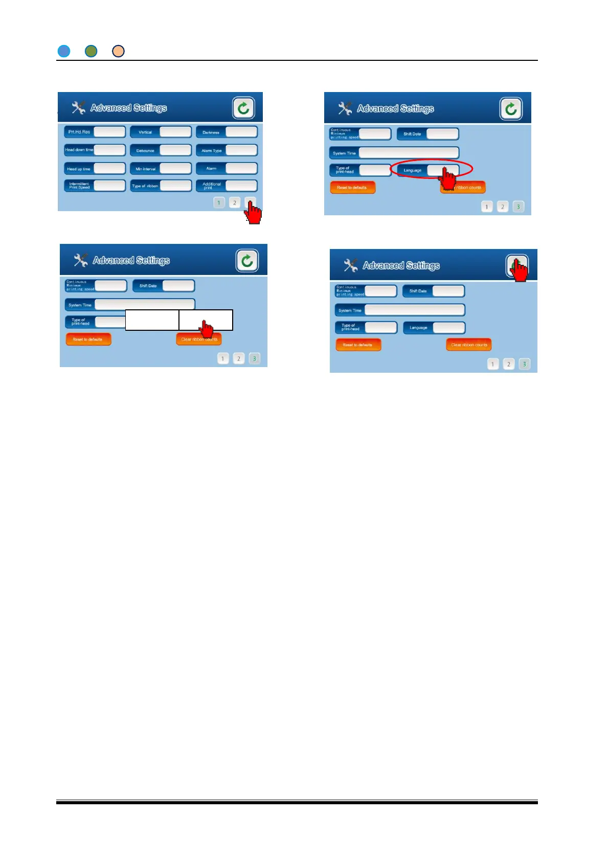 Note: cannot enter into advanced setting and system diagnostic screen when the printer is running.
