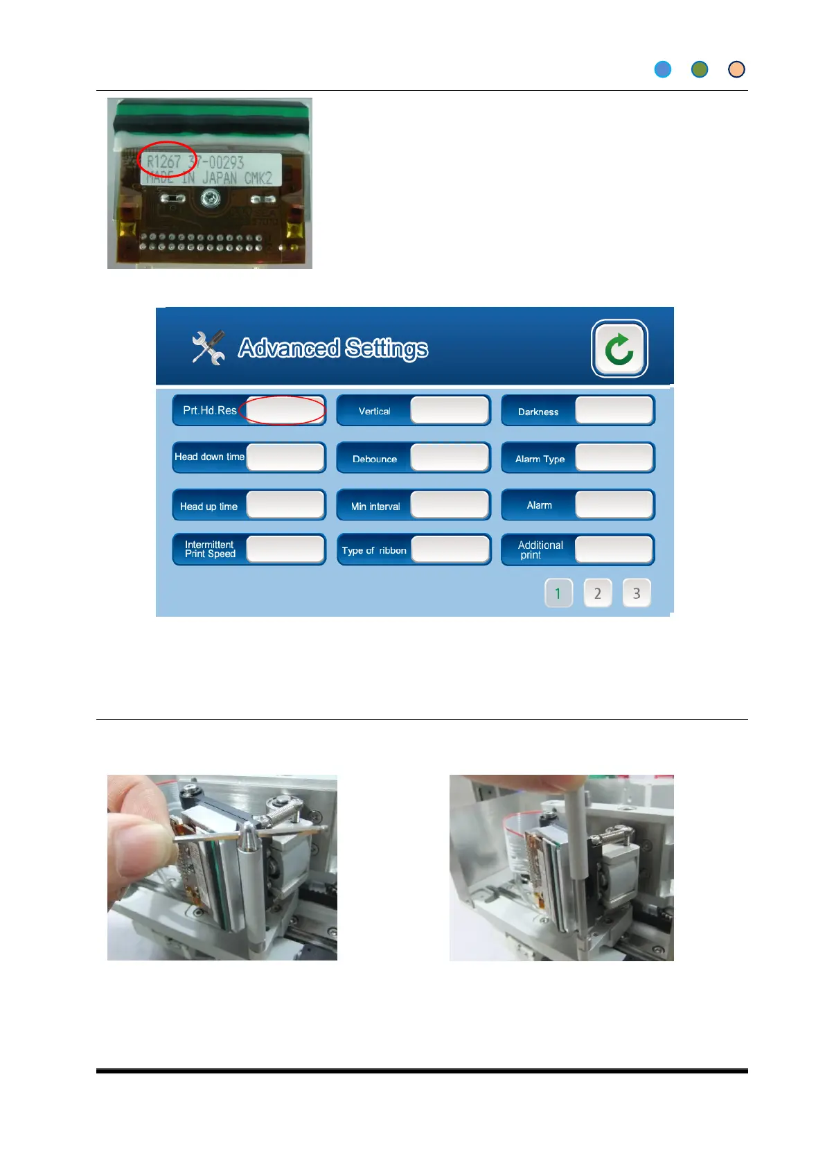 From the Advance Setup screen, select the Printhead Resistance to enter the real value printed on the label.