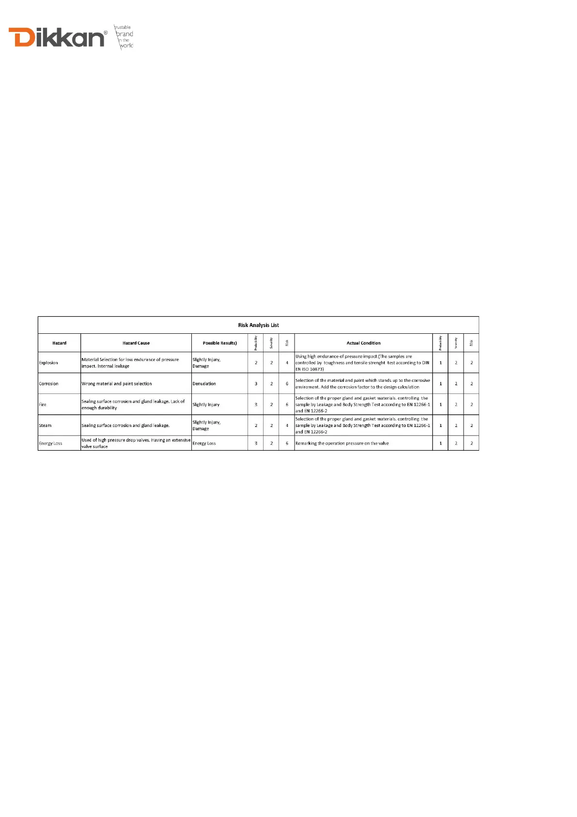 Dikkan globe valves comply with the requirements of the European Pressure Equipment Directive 2014/68/EU. Valves