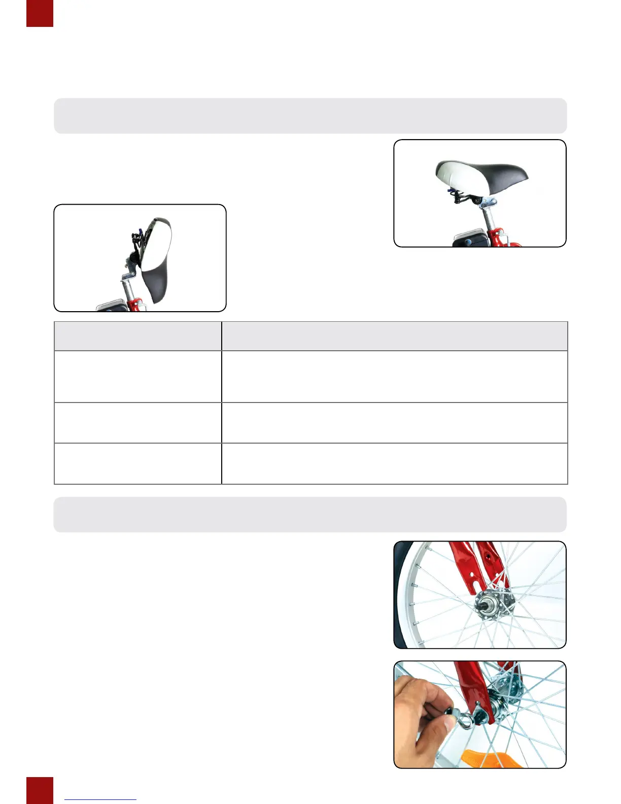 ● Place the front wheel in the front fork drop out slots and