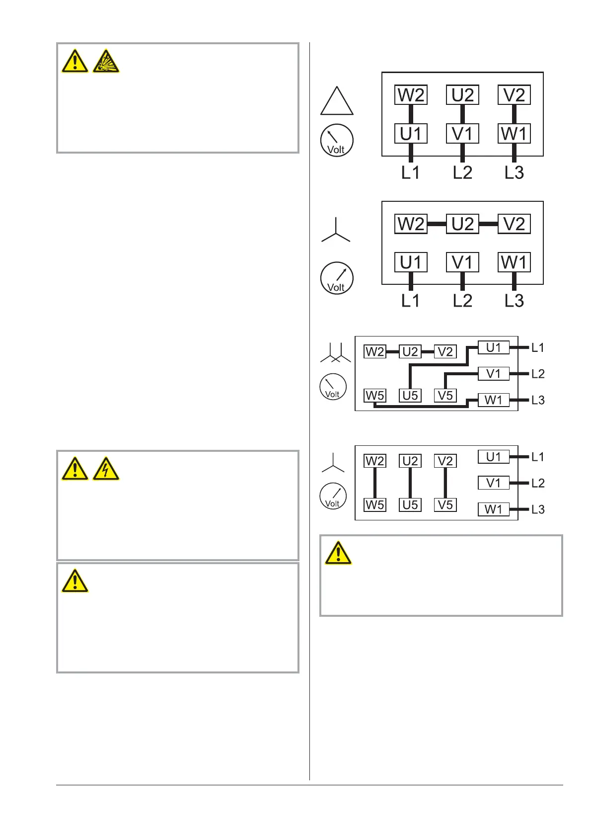 Double star connection, multi-voltage motor (low voltage):