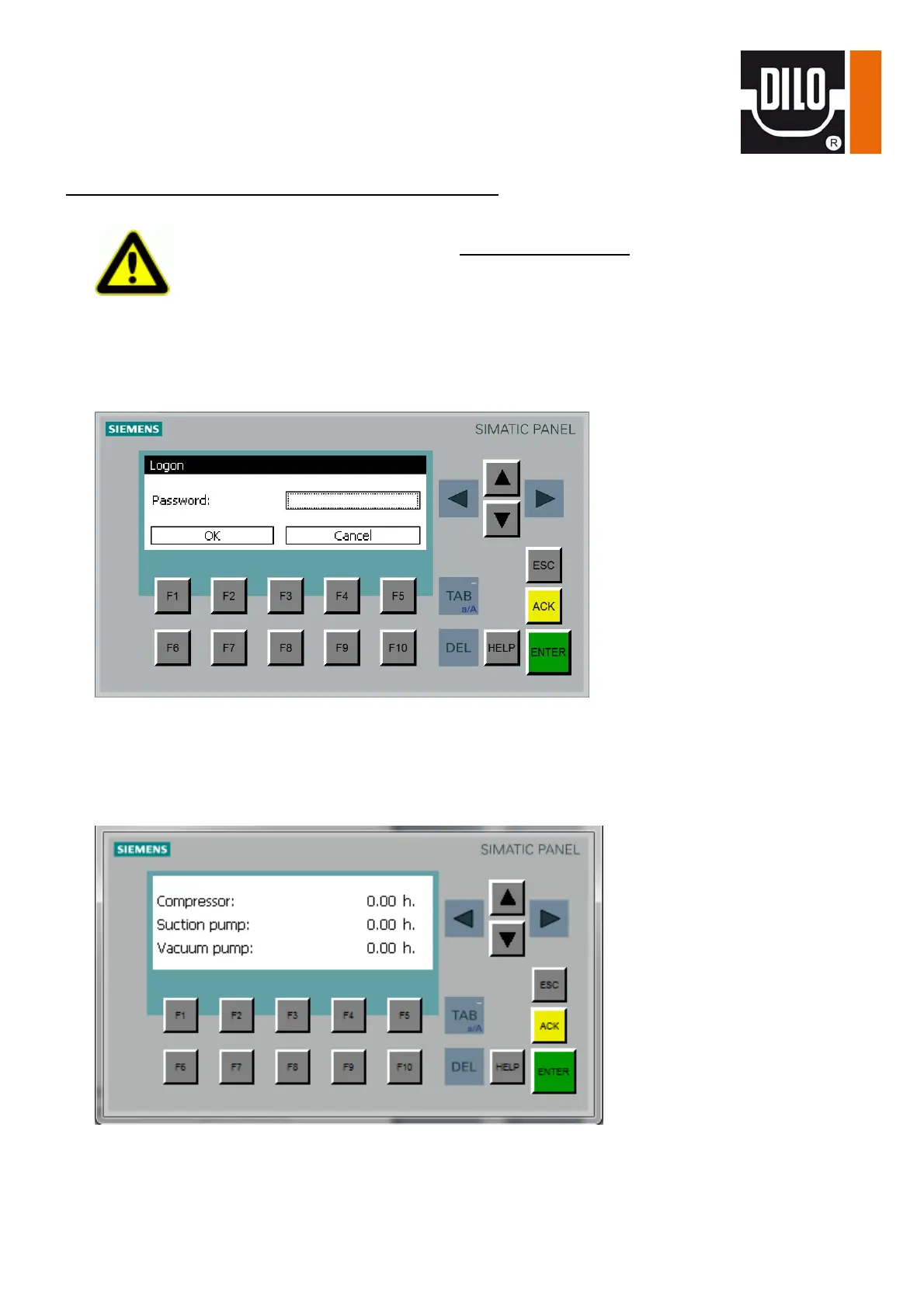 running times of the components appears. If the password is incorrect you have to enter the password