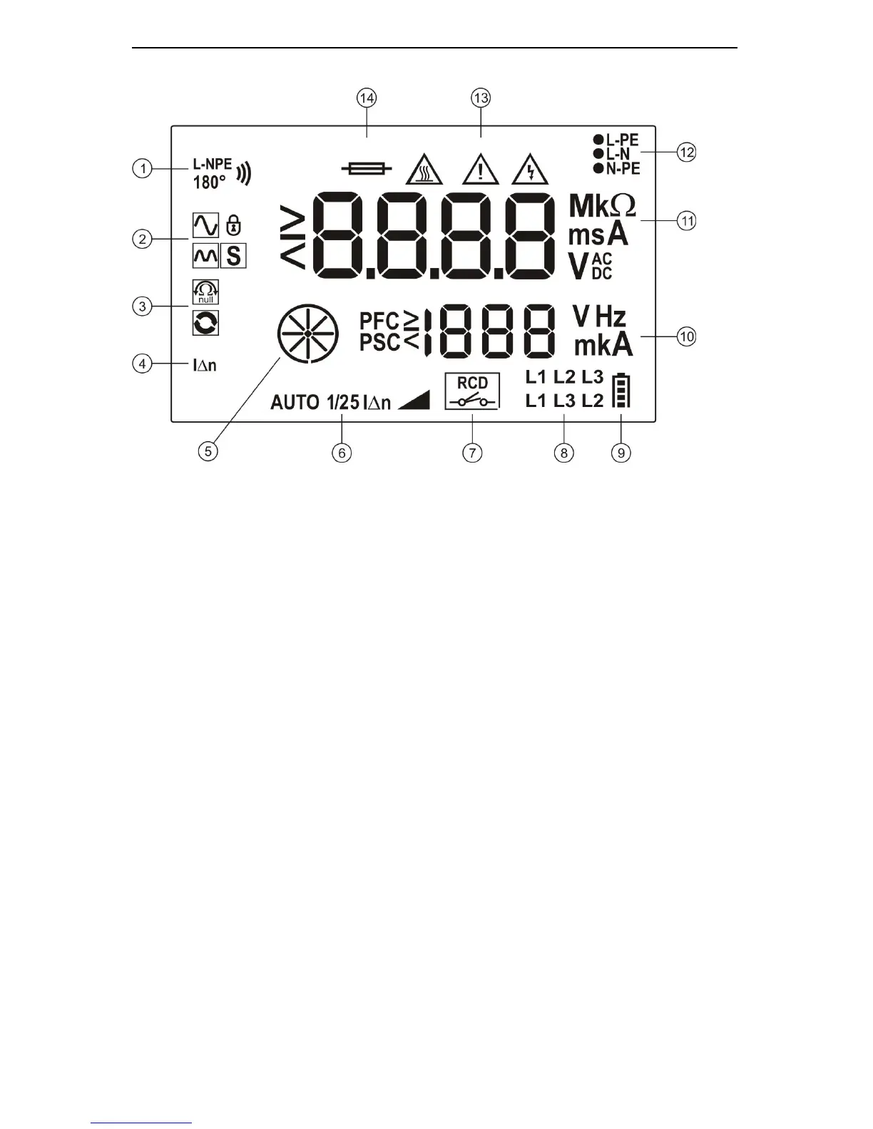 6. RCD test icons. These icons display the selected RCD test