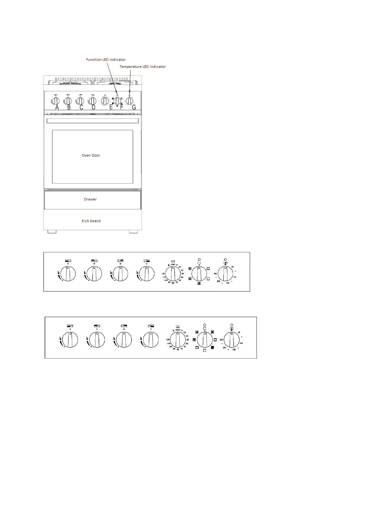 F is oven function selector allowing you to select the suitable baking function.