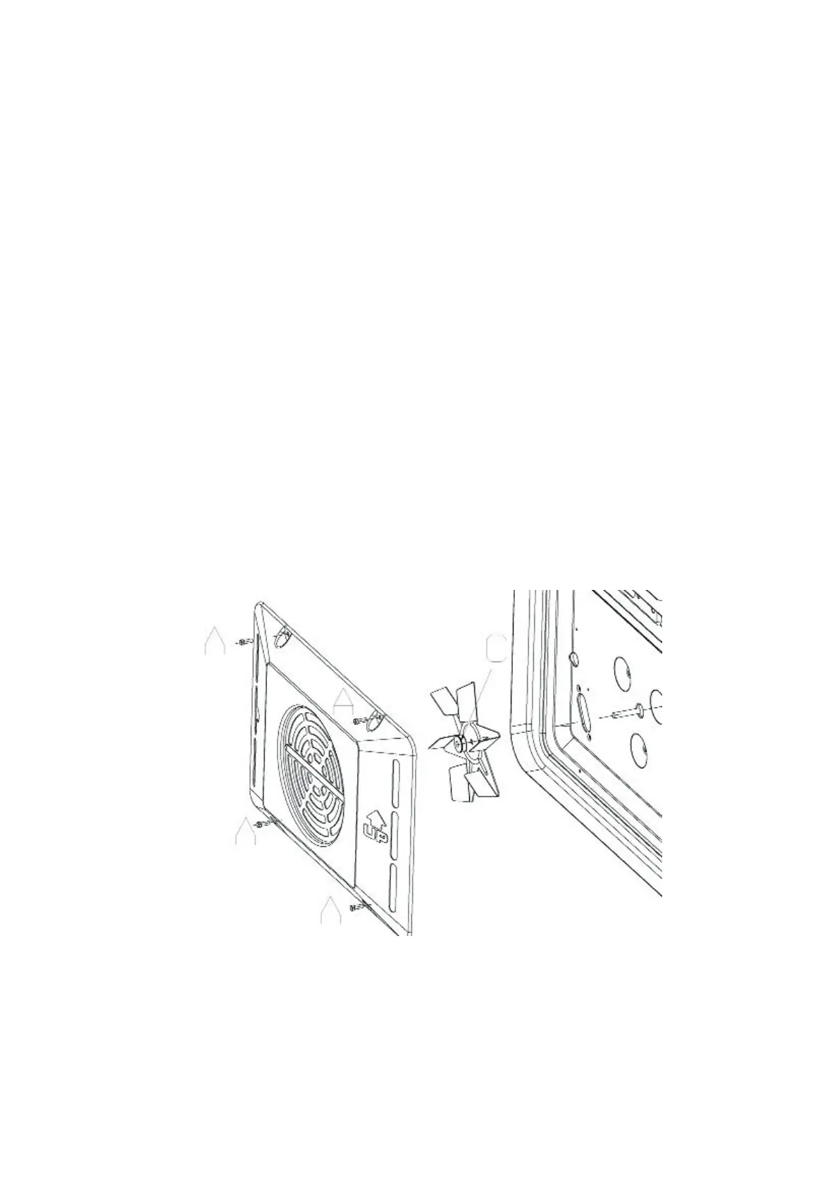 Ensure the oven is switched off before removing the fan cover. Unscrew the four screws